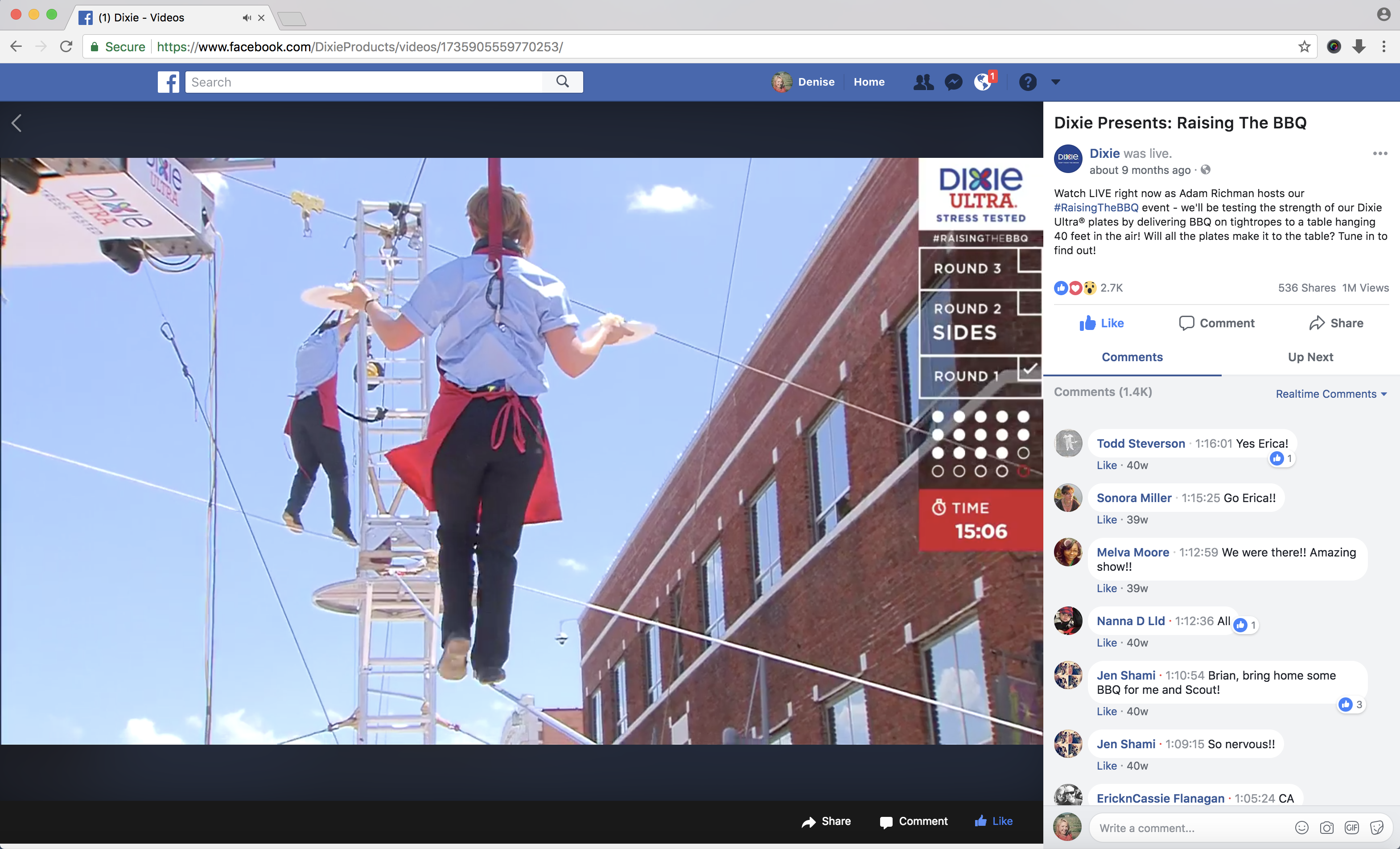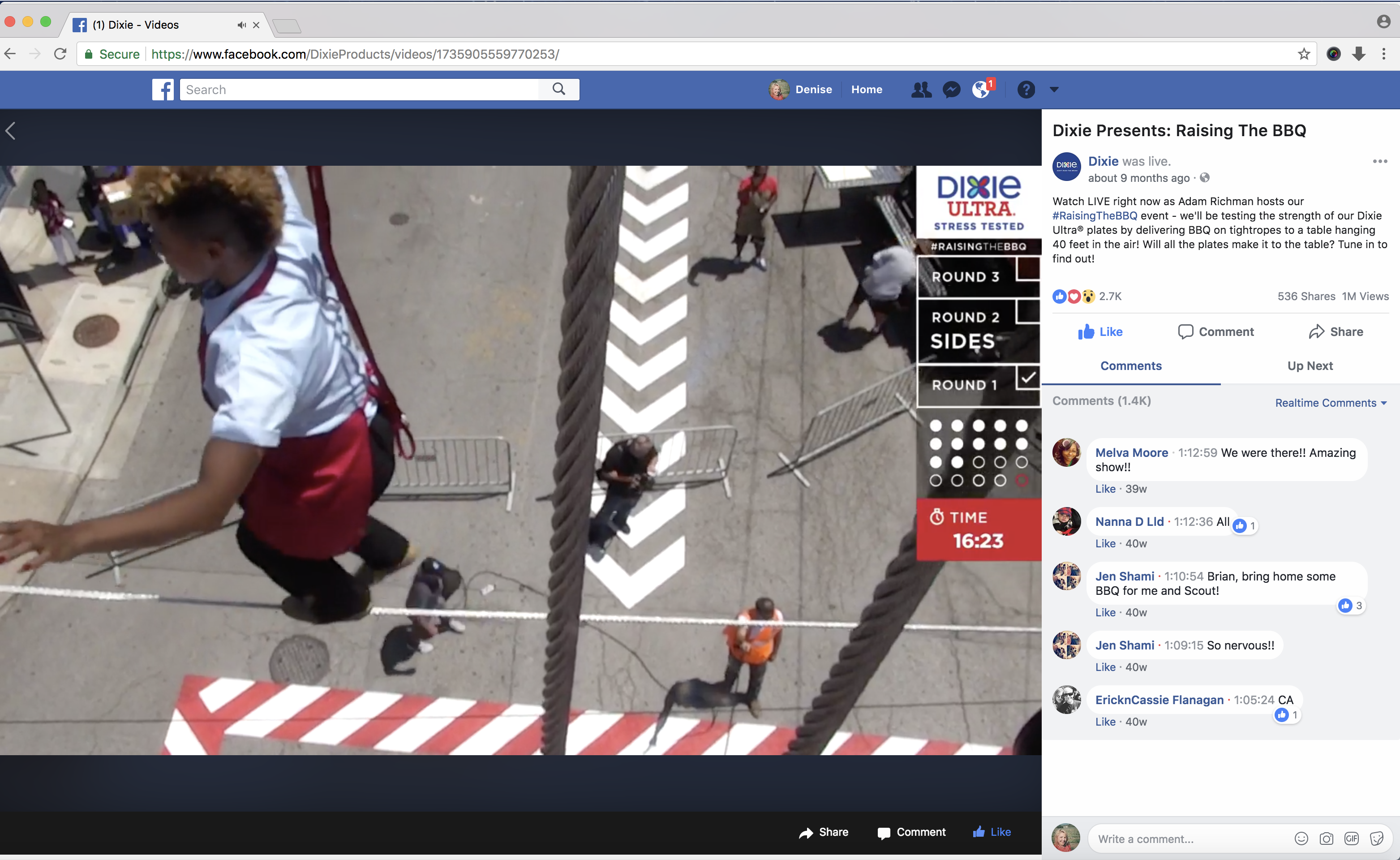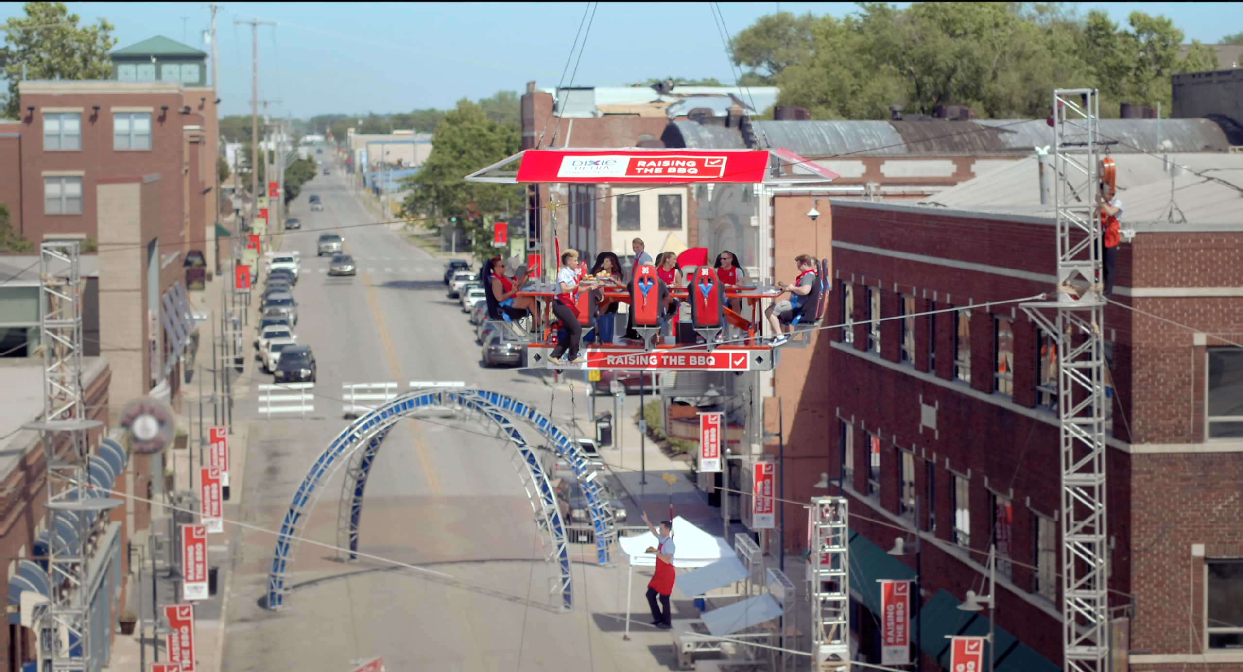 In a live activation, we went to Kansas City to open a pop up restaurant 40 feet in the air with high wire walking waiters carrying BBQ to the table. This final test, hosted by Adam Richman, was broadcast on Facebook Live to more than 1 million viewers.